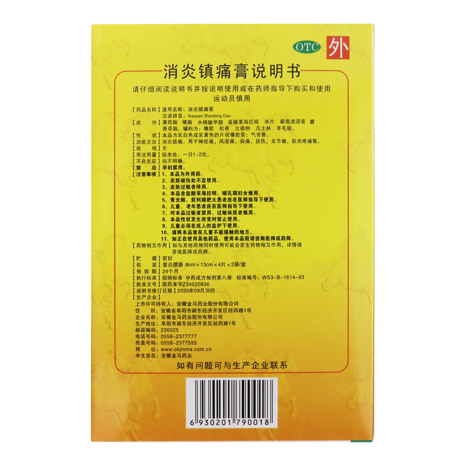 金玛神 消炎镇痛膏 - 安徽金马药业股份有限公司